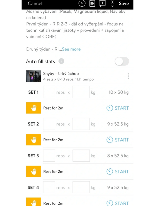 Každý trénink má svoji posloupnost cviků , dle které klient trénuje, vše jako jsou počty sérii, opakování, tempo a pauzy jsou nastavené trenérem, klient pouze vyplňuje data jako jsou provedená opakování a pracovní váha, u každé série jsou také stopky pro ideální pauzu.