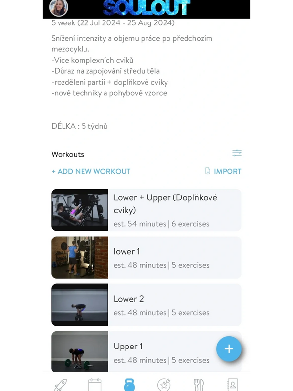 Celý tréninkový plán s veškerou dokumentací je klientovi kdykoliv k dispozici přímo v aplikaci.