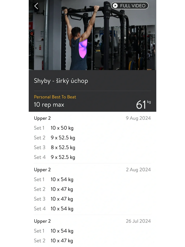 Klient vždy vidí jak si vedl předešlý trénink a může tak snadno postupovat dle strategie ,kterou trenér nastavil.Každý cvik z kterého je trénink složen má také video dokumentaci, která slouží jako pomůcka pro správné provedení cviků když klient zrovna necvičí s trenérem.